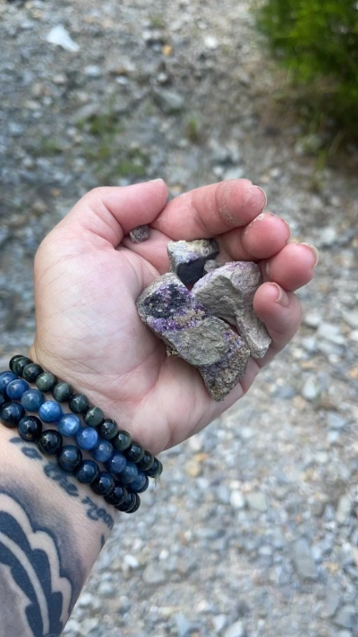 Pictured below is a photo of a supervised dig on Pine Mt. in Spruce Pine N.C. through the Quartz Corp of us and our two younger children, Jordyn & Lilly. At this mine we found Feldspar, mica books, smokey quartz and Autunite. Fun fact, Autunite is uv reactive under a uv light. We have some at our shop on display in our black light room.