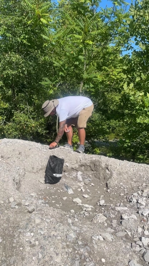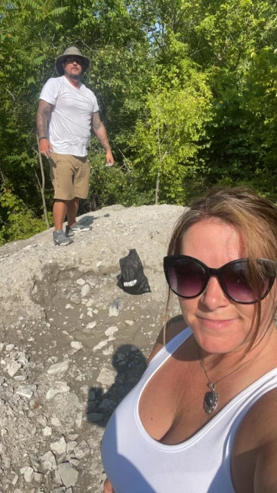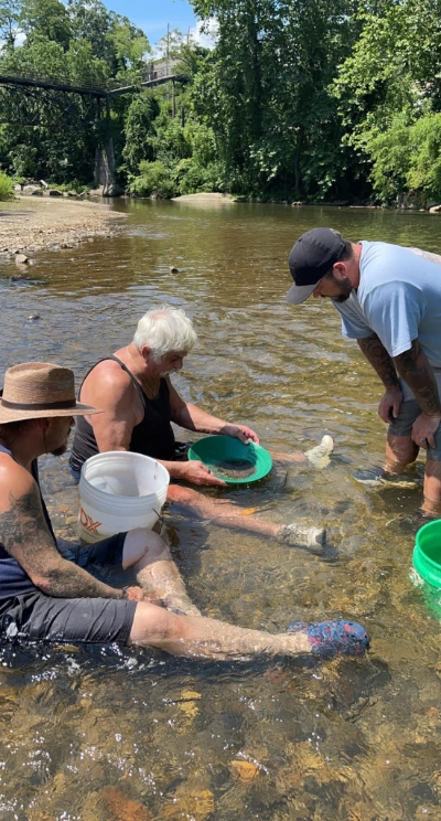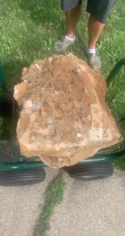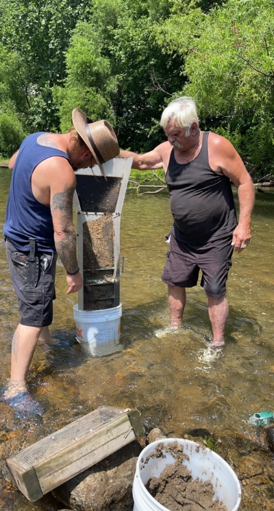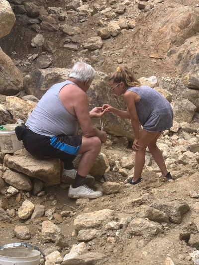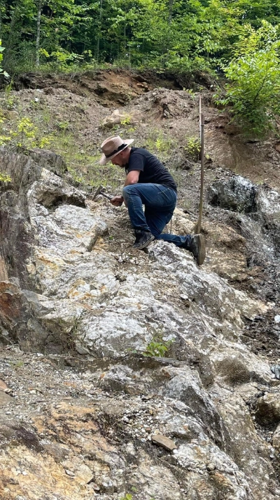 This photo was taken while at a group dig we offered to our customers to a pegmatite mine through Gem Mountain in Spruce Pine, N.C. the owners do Salt this location but through the years I've been able to find Garnet, Aquamarine, Clear and Smokey Quartz, Tourmaline, as well as gem quality Golden Beryl naturally in this location by breaking open the granitic rock. This dig was a lot of fun and we enjoyed watching our family, friends and our customers that came along with us dig and find minerals here.